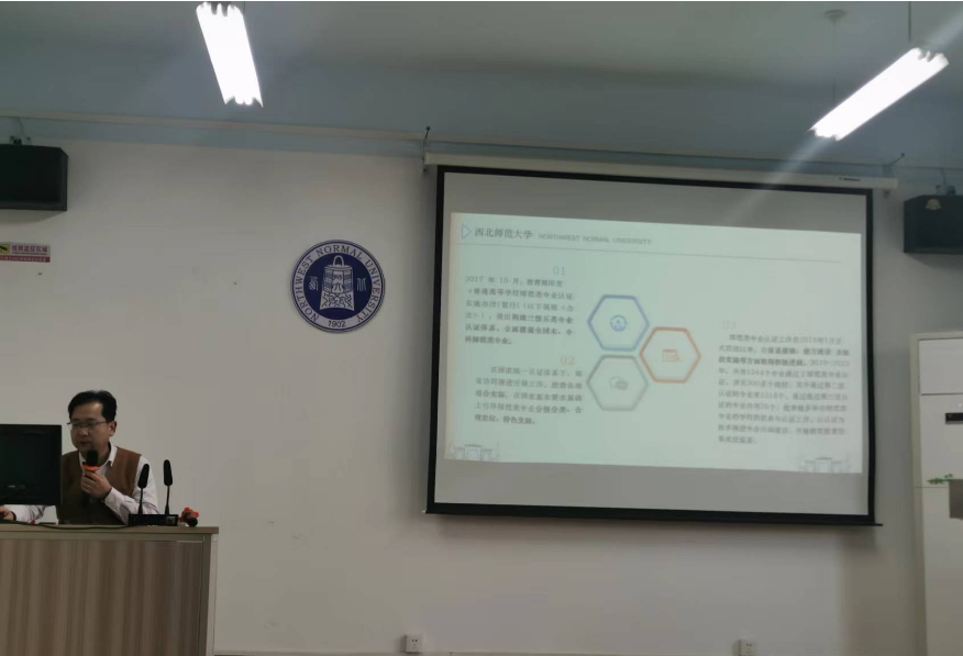 李升炜副院长根据“师范类专业认证政策解读”和“基于OBE的课程大纲撰写与课程目标达成评价”两个PPT,对师范专业认证和基于OBE的课程大纲撰写与课程目标达成评价进行了详细的讲解,深入浅出,使老师们对师范类专业认证政策、理念和要求以及基于OBE的课程教学大纲撰写与课程目标达成评价、教学目标的设定、教学活动的设计、教学评价的实施有了清晰的认识和理解,为今后教学活动的有效开展、教学质量的提高和本科审核评估暨师范认证评估的开展打好了基础。