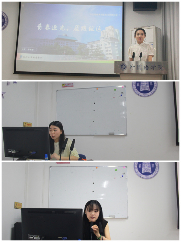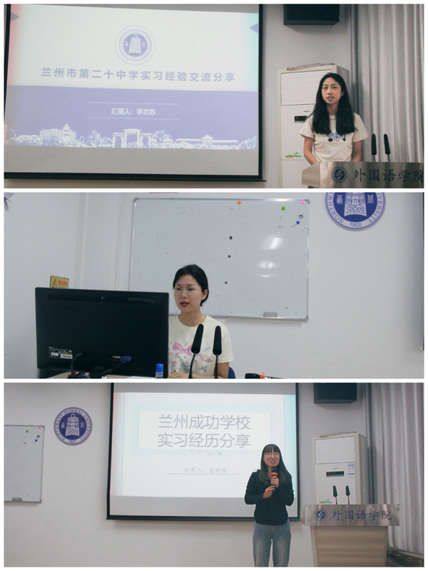 随后,李芳苏、贾静静、包狗霞、仝桂红、胡入月、张晚晴等6位优秀实习生代表,从教学工作、班主任工作等方面汇报并分享各自的实习成果。王飞老师和钟莉婷老师加以精彩点评。