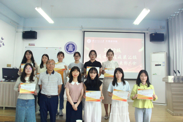 最后,张宝林老师、钟莉婷老师和王飞老师为20名优秀实习生颁发荣誉证书。