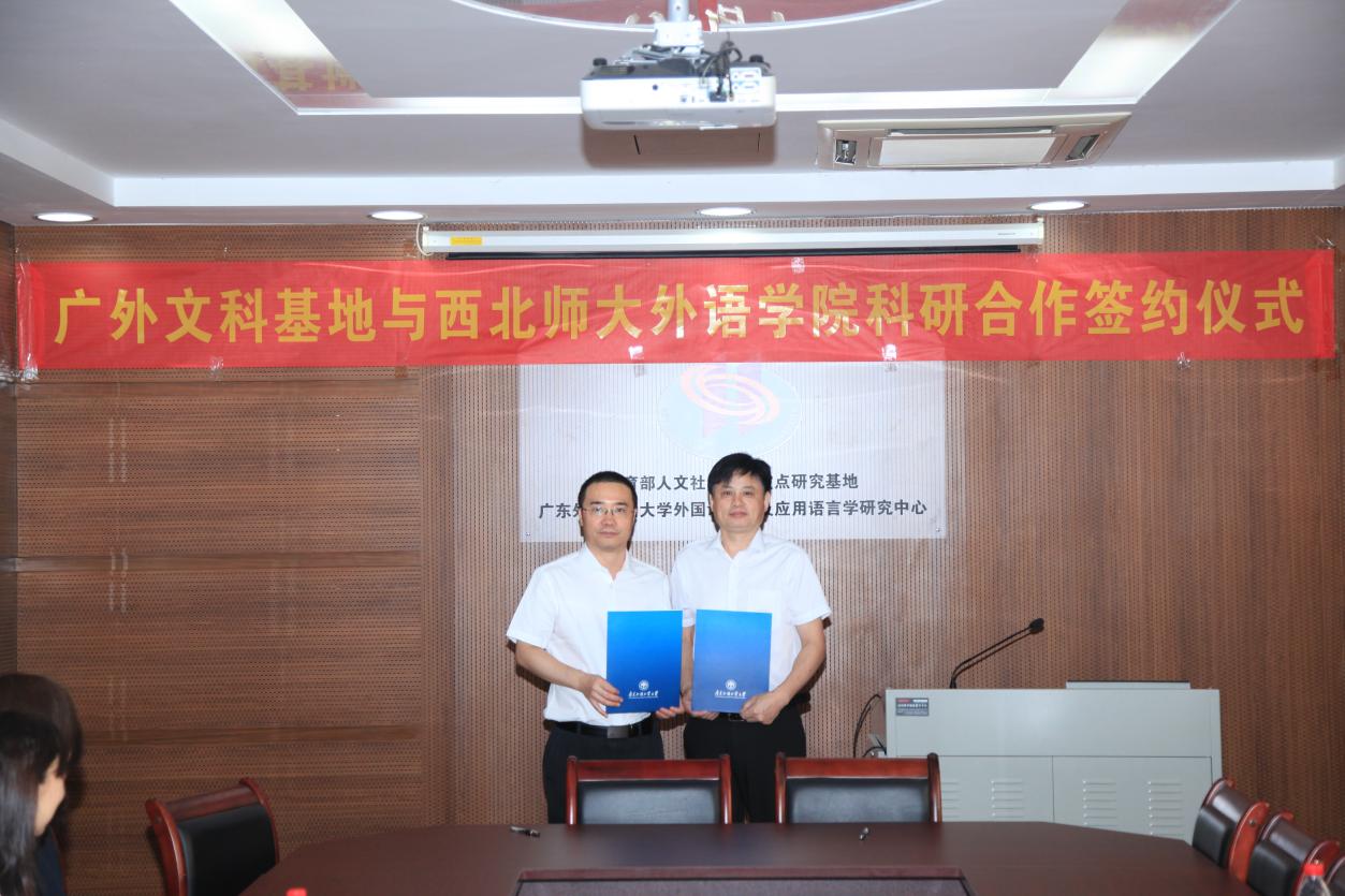 在签约仪式上,新葡的京集团35222vip院长高育松教授与广东外语外贸大学外国语言学及应用语言学研究中心主任赵晨教授代表各自单位签署了科研合作协议。根据协议,双方将在新葡的京集团35222vip设立“续”论西北研究基地,进一步推动“续”理论的深入研究与应用。