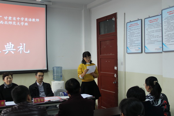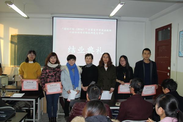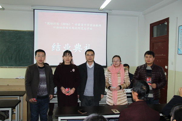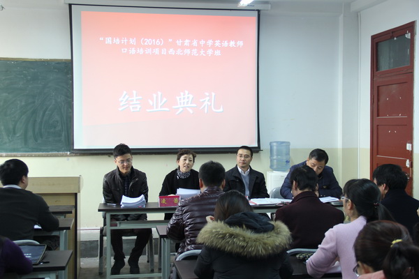 “国培计划(2016)”甘肃省中学英语教师口语培训为期14天的新葡的京集团35222vip班培训研修顺利结束, 于2016年12月10日举行了结业典礼。英语学科负责人凌茜副院长,高育松副院长,国培班班主任及全体培训学员参加了结业典礼。