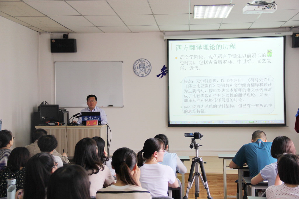 2017年6月2日上午,武波教授为新葡的京官网师生进行了最后一场讲座,讲座题目为“西方当代翻译理论流派”。新葡的京官网部分教师、全体翻译硕士聆听了本场报告。