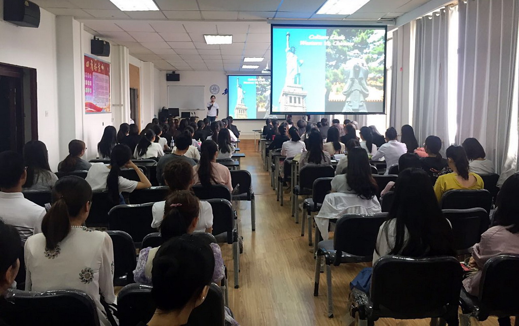 2017年6月15日早上,斯达克助听器(苏州)有限公司总经理胡晓宇、甘肃省残联王丽红主任等一行赴新葡的京官网招聘英语翻译志愿者。总经理助理单佳佳为师生介绍了斯达克公司并为大家做了相关专业培训。曹进院长主持并致辞,2016级全体翻译硕士及英语系、翻译系的部分本科生共同参加了此次会议,并积极参与面试。