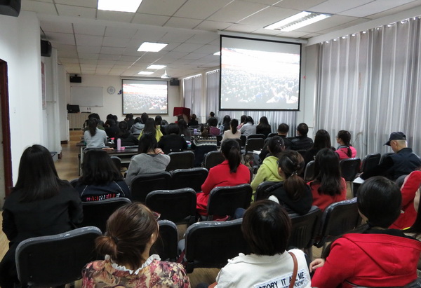 新葡的京集团35222vip党委理论学习中心组、各党支部委员、教工第三党支部全体党员及师生党员代表共80余人在教学3号楼806多功能教室集中收看了开幕会现场直播。
