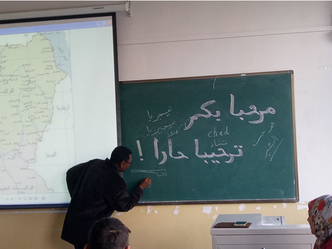 10月25日上午,专家为2017级阿拉伯语班的同学授课。首先专家向同学们说明了非洲的地理位置,介绍了许多非洲国家以及它们的节日风俗等。随后,专家向大家着重解释了和平共处五项原则和中非共处的和平八项原则的基本内容,提到中国与非洲现阶段处在一种非常友好的关系当中,他希望这种友好的关系能够一直维持。最后,专家针对初学阿拉伯语的同学们提出宝贵的学习建议,耐心地解答了同学们提出的问题,鼓励大家好好学习阿拉伯语,并邀请大家去苏丹学习、去苏丹做客。