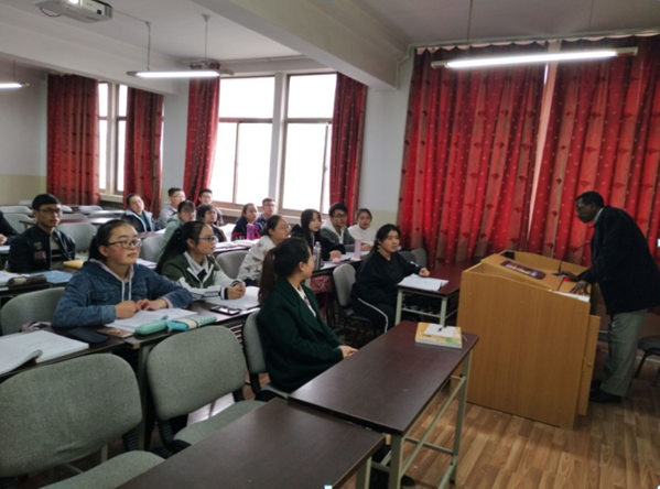 10月26日下午,苏丹专家于教三309教室与2016级全体学生开展授课指导活动。外籍专家首先展示了近年来中国与苏丹之间的外交关系成果,两国在政治经济医疗教育等各方面的合作都取得了显著的成绩。同时也展示了苏丹的国情风貌,大家看到传统的农业国家在中国的援助下在许多方面有了明显改善,并指出中国为苏丹提供了许多帮助,苏丹人民将十分珍惜与中国的友谊,愿两国在未来有更深入的交流合作。