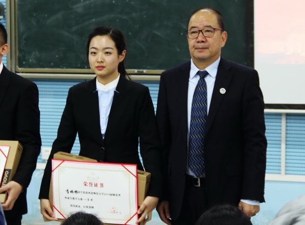 在决赛中的实习话感想环节,李格格同学以感恩与成长为主题,通过实习中的小故事,展现了实习对自己教学理念与教学能力方面的提升与锻炼,表达了对学校及老师、实习学校师生的感激感恩之情。在模拟授课环节,李格格同学语音流畅,教学用语准确,课堂指令清晰,教学活动设计丰富多彩,教学环节环环相扣,教态大方自然,富有感召力,获得了评委的一致好评。最终,李格格同学以文科第一名的成绩斩获大赛一等奖。