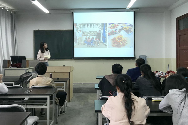 本次活动由2015级赴埃及留学的六位同学分享留学经历,他们分别用照片,幻灯片及视频等形式讲述了在埃及的学习、生活、旅游经历,时而提及趣闻引得同学们忍俊不禁,时而分享美食照片使同学们垂涎三尺,时而观看美景让同学们心向往之,讲述十分精彩,同学们也纷纷提问,希望了解更多的留学情况,在热烈的掌声中活动圆满结束。