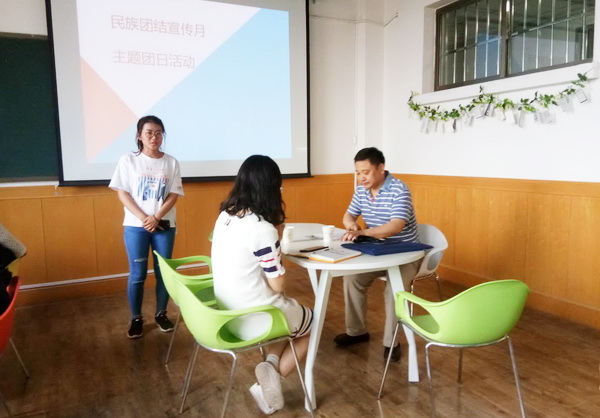 2018年 6月1日下午,在学院“学习,生活,就业指导”工作室召开了以“加强民族团结进步宣传教育,铸牢中华民族共同体意识”为主题的座谈会。学院党委书记柴繁隆、团委书记陈潇及学院少数民族同学共同参加了此次座谈会。