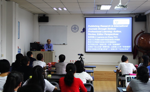 第三场讲座题为“Documenting Your Research Carefully : MythologicalRigour as a Guarantee of Potential Acceptance by Editors of InternationalJournals”。报告会上,张军教授首先阐明中国学者做研究时所面对的五个问题,进而介绍不同的研究方法及传统,通过实例说明质性研究,量性研究和混合研究的特点。其次,张军教授重点讲解了如何写论文中的引论,讲座过程中,张军教授从论文的引论撰写中存在的问题出发,结合丰富的实例,提出在研究中每一步过程都必须精确详细。此外,张军教授指出在论文的讨论部分不仅仅是综述研究结果,更应该对研究结果进行分类讨论以使得研究结果的呈现更为详细。最后,张军教授指出引论作为论文的主基调,其撰写的推进道理因人而异,但是要做到逻辑连贯以帮助读者更为深刻地理解研究内容;同时,张军教授还通过三个实例指出引论撰写没有诀窍,最好的办法就是写中学,学中写。张军教授详细的讲解和认真的解答使得在座师生深受启发。