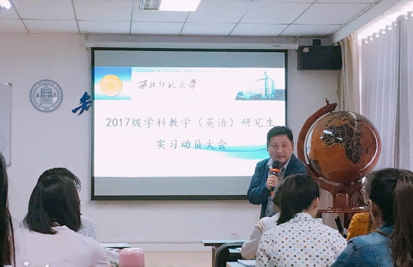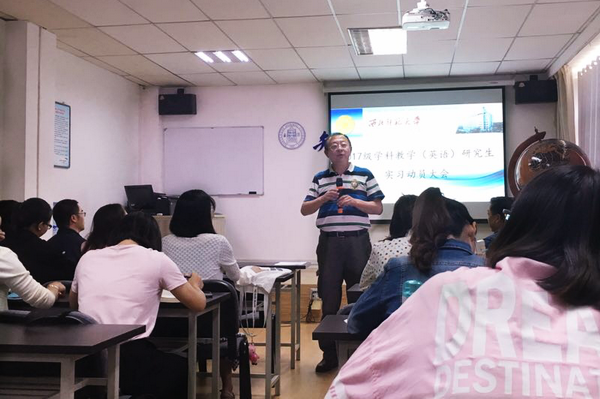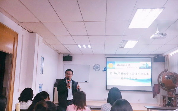 2018年9月12日上午10:00,新葡的京集团35222vip“2017级全日制学科教学(英语)研究生实习动员大会”在3号教学楼806教室召开。新葡的京集团35222vip党委书记柴繁隆、院长曹进、副院长高育松出席会议,2017级全体学科教学(英语)研究生参会。会议由教育硕士中心主任钟莉婷主持。