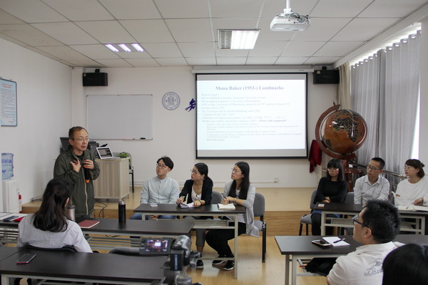 钟勇教授从贝克的四个翻译+理论出发,阐述了自己对翻译的看法,即翻译是一种选择,一种缺失,翻译与其说是对文本的翻译,不如说是与听众,与读者共同建造出的智慧。因此,我们要努力探索新的翻译理论和翻译思维,力求达到推陈出新,同时钟勇教授对学生的提问给予了详细解答,使得现场的老师和学生都受益匪浅。