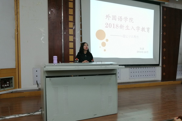 10月19日晚七点半,新葡的京官网在教学6号楼c115举行了遵纪守法教育讲座,本次讲座由学院团委陈潇老师主讲,新葡的京集团35222vip2018级全体学生参加了此次讲座。