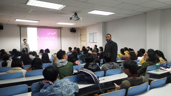 阿拉伯语专业于2018年10月19日下午16:30至晚19:30在教三709多媒体教室举办了以“大学生活、专业学习与个人发展”为主题的新老生见面暨专业学习经验交流会。本次活动由马志远老师组织和主持,阿拉伯语系两名外教哈桑和穆罕默德,一年级全体学生及二、三、四年各级学生代表参加本次活动。 本活动正值新生开课一个月后,目的在于借助阿语系高年级学生在学习、生活和个人发展方面的心得和感悟给新生同学做一次关于专业学习和个人发展等方面的教育和启蒙。
