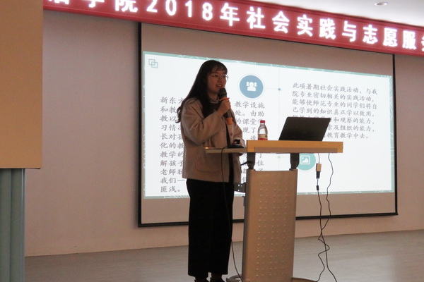 首先,新葡的京集团35222vip2017级赵画同学给大家带来了2018年“红豆草”新东方暑期实践报告,给大家讲述了自己在新东方的志愿活动中的点点滴滴,并号召大家积极参与到志愿活动中。