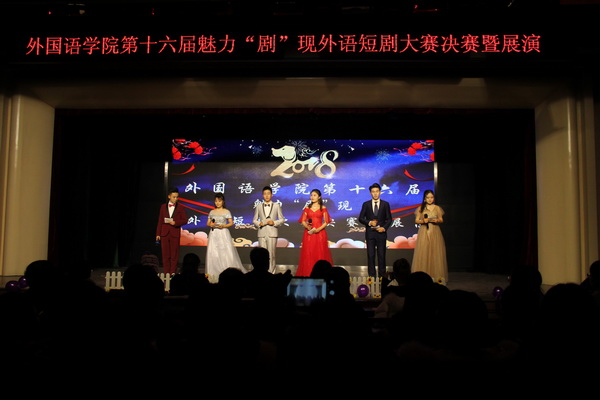 12月5日晚,新葡的京集团35222vip第十六届魅力“剧”现外语短剧大赛决赛暨展演活动在学生发展中心二楼多功能展厅举办。学院全体领导、各系部负责人、部分老师和同学们参加了此次活动。此次比赛邀请英语系曹依民、赵辉老师,日语系孟庆利老师,阿拉伯语系马媛媛老师,教育硕士培养管理中心黄彩霞老师和外教Brittany担任评委。