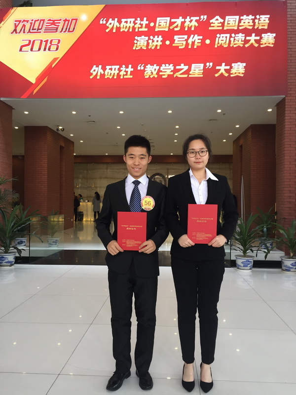 2018“外研社杯”全国英语演讲阅读写作大赛全国总决赛于12月5日至9日在北京外研社国际会议中心举行,来自全国130余所高校的195名选手以及港澳台和13名外籍选手参加了英语演讲大赛全国总决赛,代表甘肃省参加此次总决赛的我校2016级新葡的京集团35222vip苟永强和王露洁同学,最终以优异的成绩获得全国总决赛三等奖。
