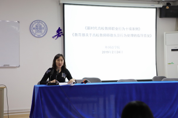最后,学院相关负责人全文传达学习了《新时代高校教师职业行为十项准则》、《教育部关于高校教师师德失范行为处理的指导意见》。