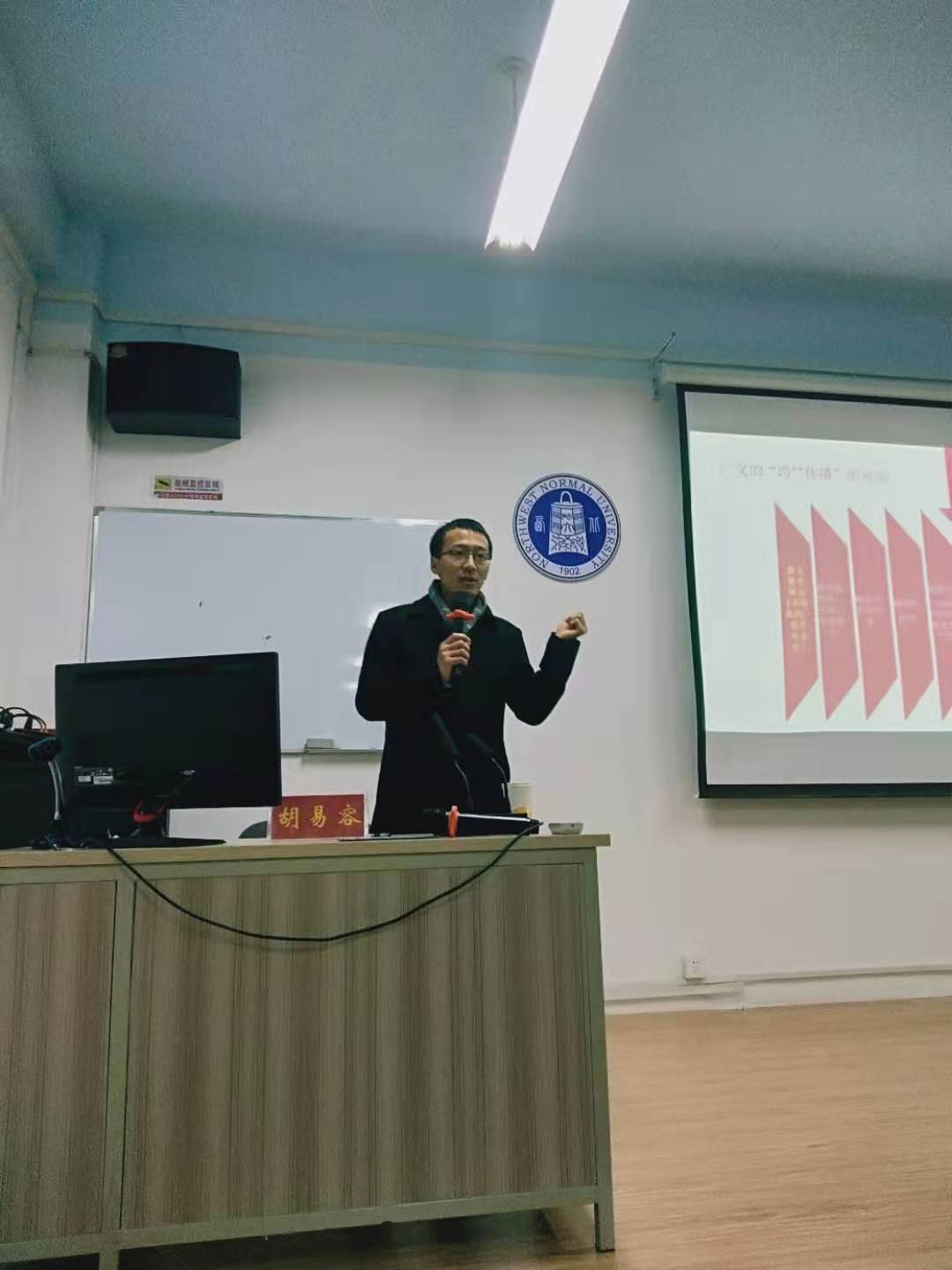 首先,胡老师从广义的“跨**传播”的可能性角度出发,提出了关于传播的两个推论:1.在遮蔽作为常态的理论语境下谈论包括跨文化传播”在内的任何传播;2.传播的本质是克服某种障碍-“去蔽”。接着,胡教授指出在传播学中看待“去蔽”有两种思路:物理的阻隔和理解的阻隔,前者是对物理时空上障碍的克服(信号传媒学);后者是对人及其构成的文化社群障碍的克服(符号交流学)。其次,胡老师对亨廷顿的著作《文明的冲突》悖论作了进一步的解释,并提出了两个有趣的追问,在场同学就这两个问题进行了深入的思考和讨论。随后,胡老师着重讨论了意义世界与自在世界的交界面。在卡西尔和赵毅衡的哲学符号学论述上,胡老师提出了自己的观点:哲学符号学的起点是阐明意义世界的起点和边界,符号学既是“感知符号学”,也是“认知符号学”。讲座之后,胡老师还悉心地回答了老师和研究生们提出的相关问题。