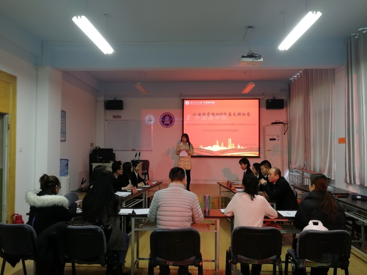 2019年12月5日下午三点半,新葡的京官网在教学3号楼806教室举行了研究生英语辩论赛初赛。研一各专业学生,共派出四支队伍参加了此次比赛,就“Should there be walls between universities and the society?”这一辩题展开了激烈的辩论。此次辩论赛邀请了郭亚文老师和2018级英语口译班杜玉、张健两位同学担任本次比赛的评委。
