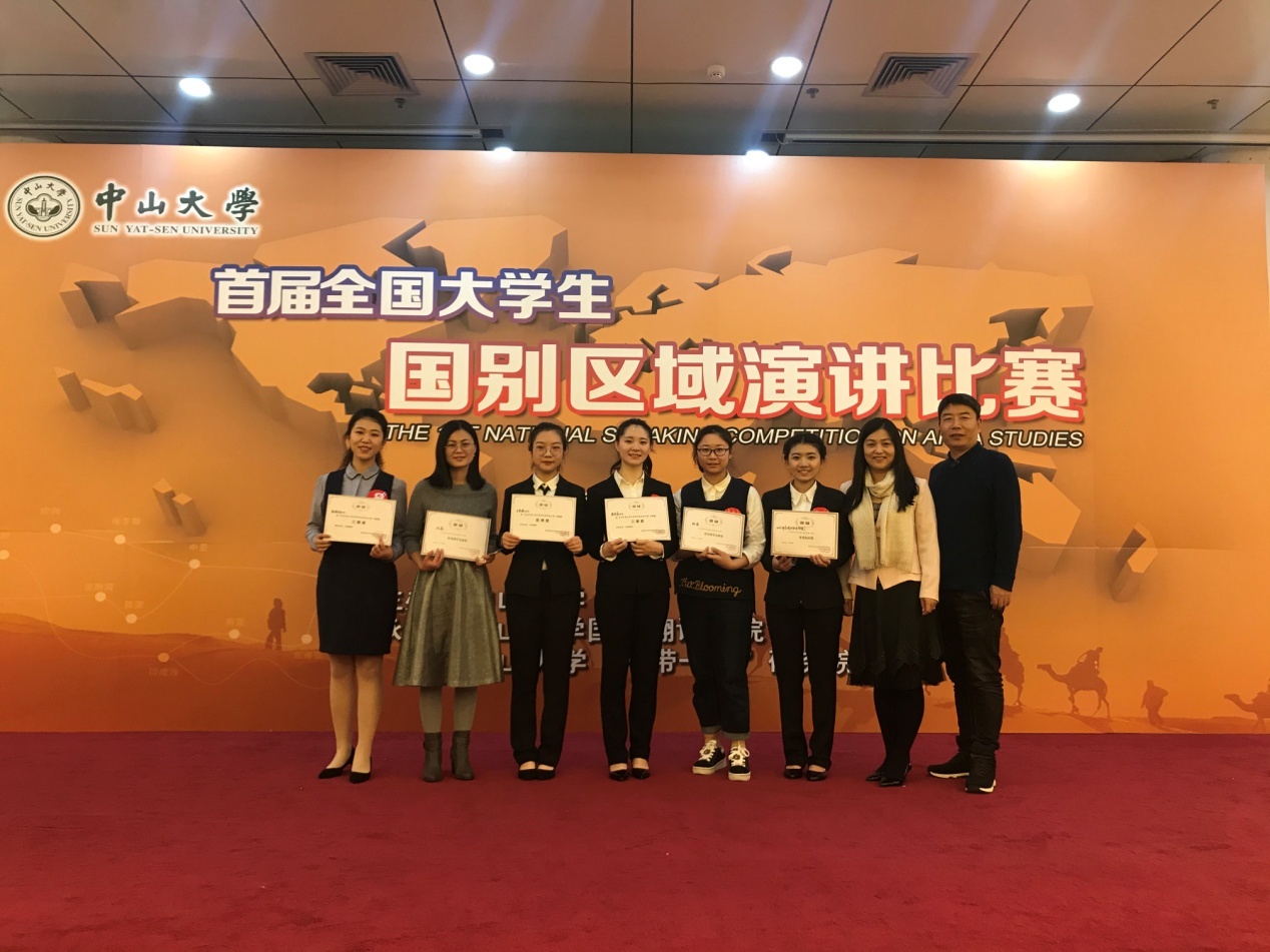 12月14日下午,首届全国大学生国别区域演讲比赛在中山大学珠海校区同期举行。170余名参赛选手围绕“一带一路”倡议、新时代大国特色外交、文明互鉴等话题展开精彩演讲。新葡的京官网陈倩老师带领6名本科生参加了演讲比赛。经过初赛、复赛两轮激烈的角逐,英语专业2018级本科生赵雨欣和翻译专业2017级本科生潘安蓉荣获三等奖,英语专业2019级本科生王紫嫣荣获优秀奖。陈倩老师、代莉老师荣获“优秀指导教师奖”。学院荣获“优秀组织奖”。
