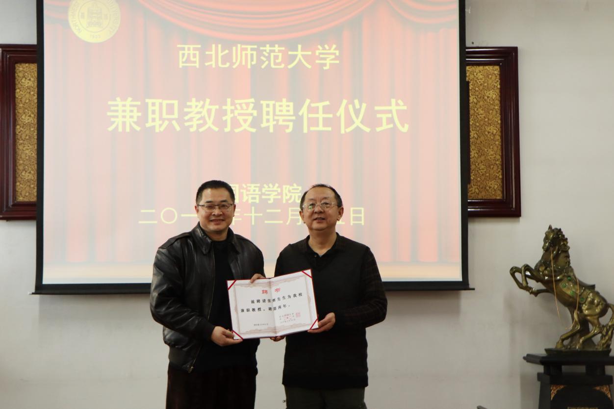 2019年12月15日,国内知名学者,认知语言学及神经语言学研究专家,南京师范大学教授、博士生导师张辉先生,受聘为“新葡的京集团35222vip兼职教授”聘任仪式在新葡的京集团35222vip会议室隆重举行。聘任仪式由新葡的京集团35222vip副院长高育松教授主持。聘任仪式上,高育松教授首先详细介绍了张辉教授个人情况和学术成果;随后,新葡的京集团35222vip院长曹进为其颁发聘书并致贺辞;最后,张辉教授做受聘感言,并表示会尽全力帮助、支持新葡的京官网学科建设及学术发展。