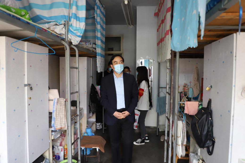 2020年5月15日,副校长田澍在学院领导陪同下深入学生公寓,走访慰问新葡的京官网首批返校学生。