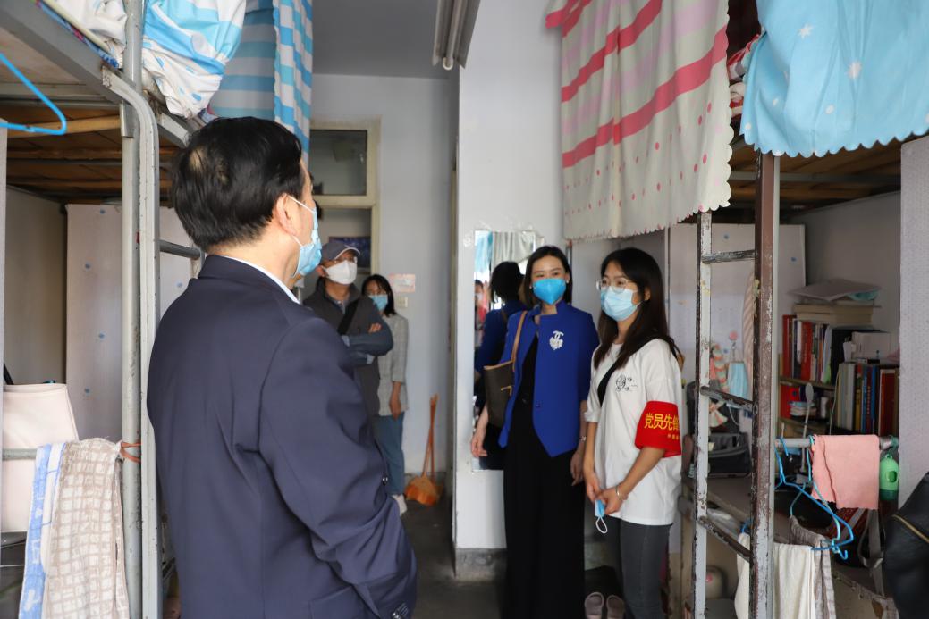 在兰天学生公寓,田校长详细询问了返校学生居家期间的学习、生活情况,并叮嘱学生在校期间注意自身防护,高质量完成学业,为大学生涯画上一个圆满的句号。