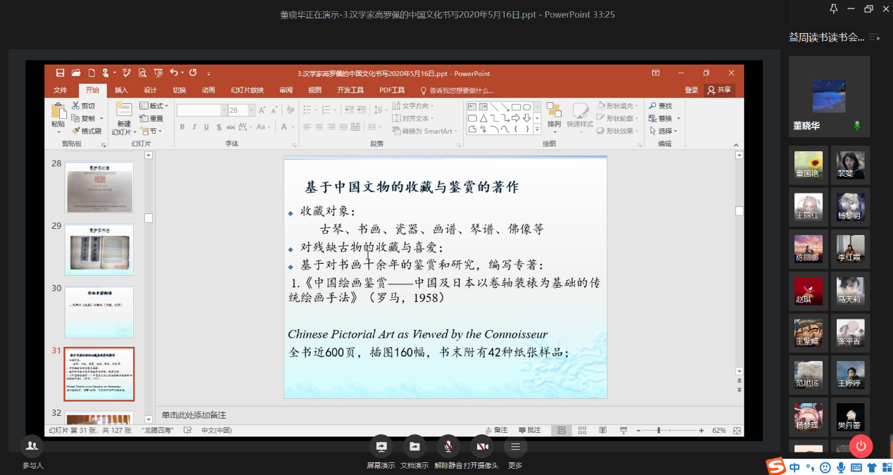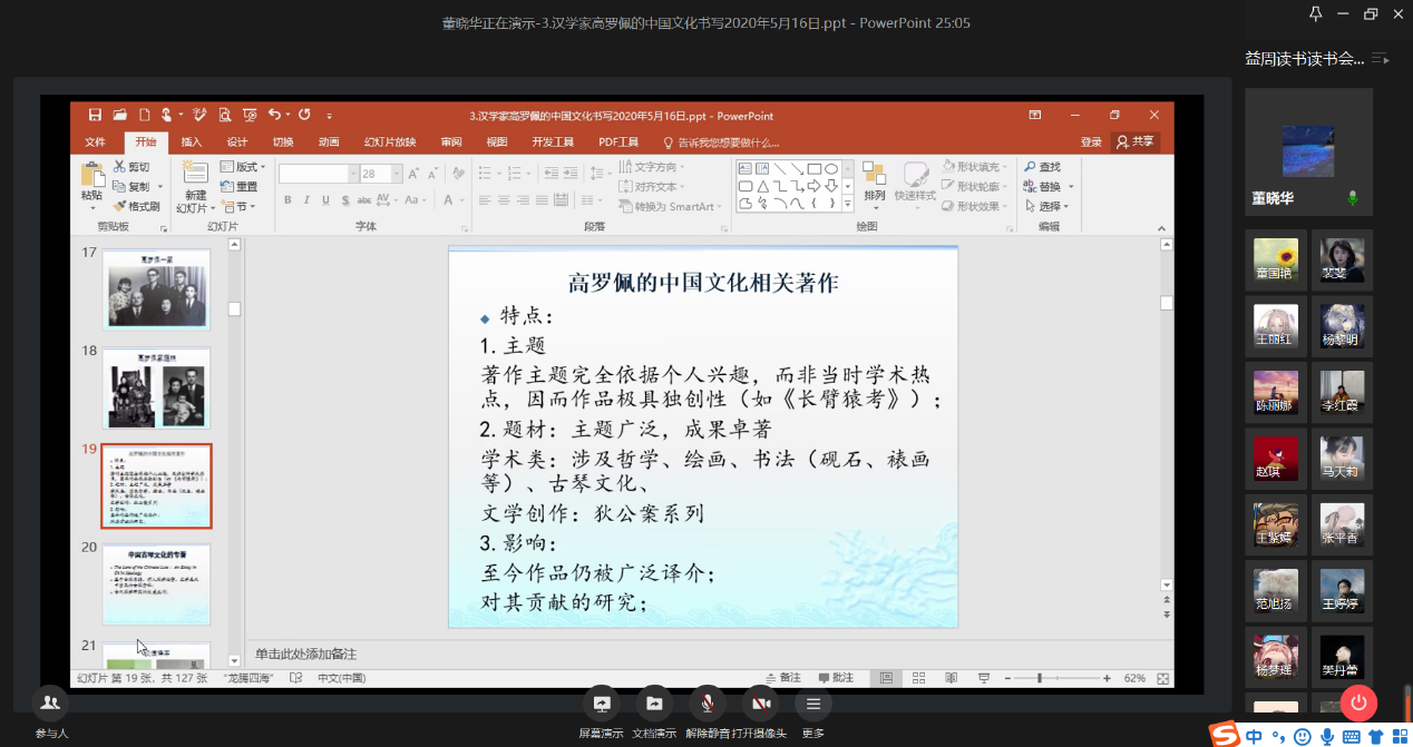 5月16日晚七点半,益周读书会第十九讲如期线上赴约。本期读书会邀请新葡的京集团35222vip董晓华老师在线解读著名荷兰汉学家高罗佩的“中国情结”。