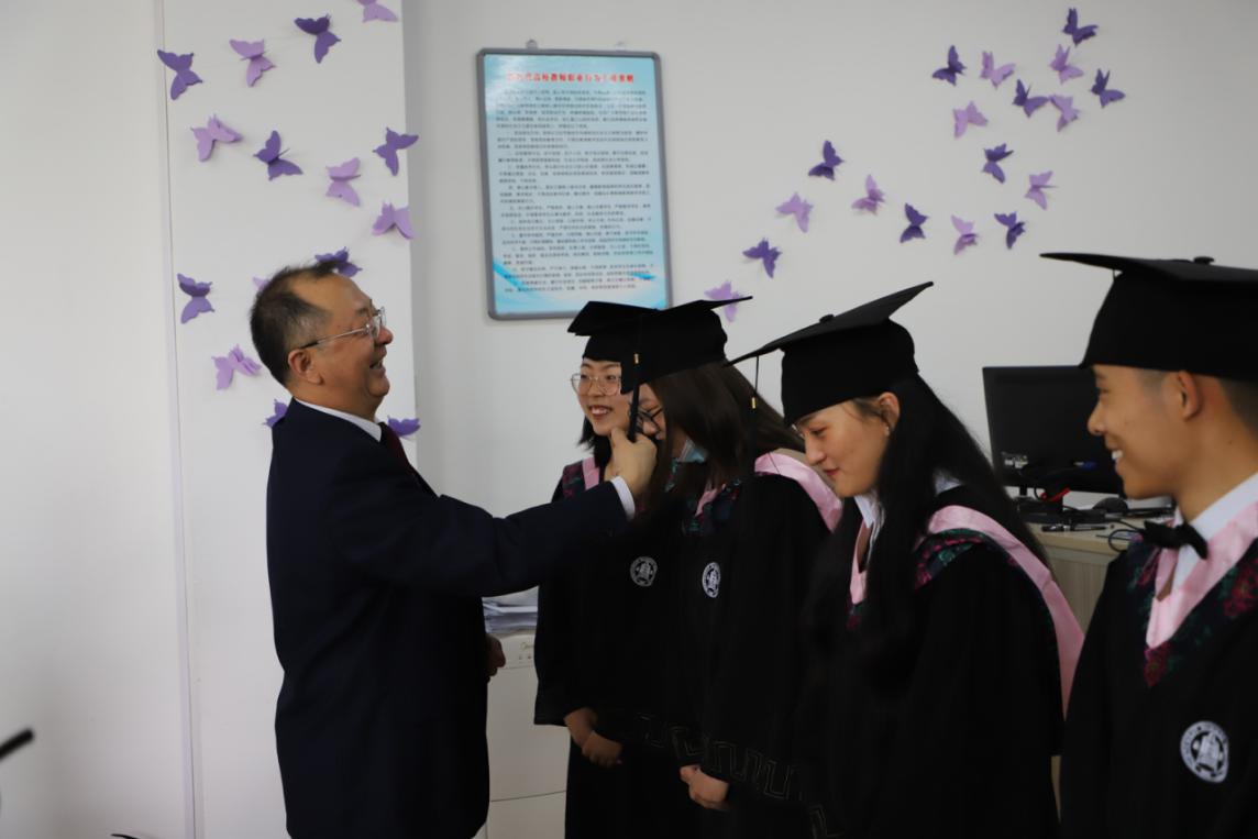 最后,院长曹进教授为到场所有毕业生代表正冠拨穗祝贺毕业学子们学有所成,并祝愿全体2020届毕业生在以后的生活工作中平平安安、万事胜意!永为师大人、永是外院人,常回家看看!