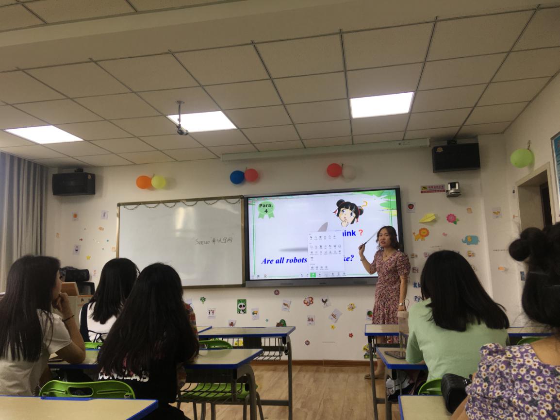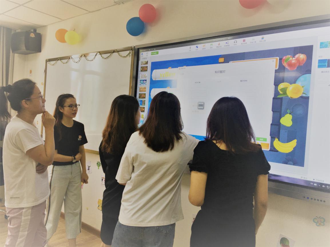 希沃白板是一款针对信息化教学而设计的互动教学平台。以生成式教学理念为核心,为老师提供云课件、学科工具、教学资源等备授课功能。培训过程中,刘畅、何兰丹、程小雨,石佳、吕少静、高雪等六位同学结合自己的使用体验,从技术要领、教学互动、功能概览等方面进行了清晰而生动的讲解示范和实操指导,使同学们对于希沃白板在中小学英语教学中的具体应用技巧有了全面直观的认知。