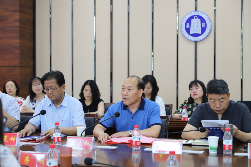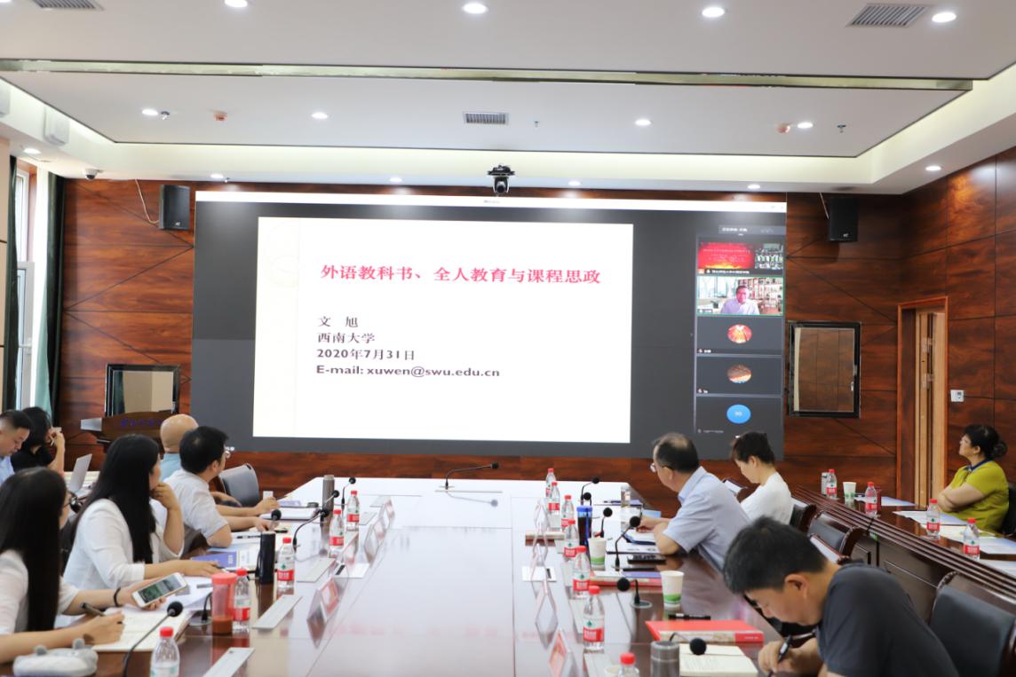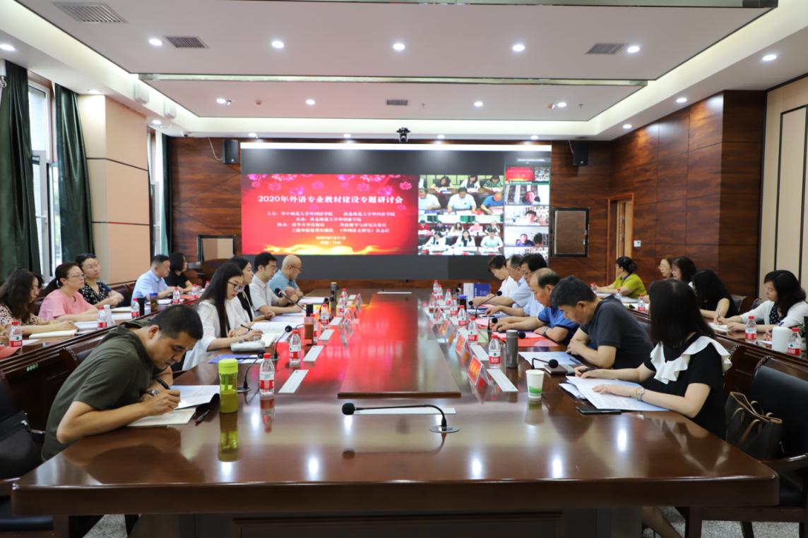 7月31日,由华中师范大学新葡的京集团35222vip和新葡的京官网联合主办的“2020年全国外语专业教材建设专题研讨会”以线上、线下相结合的方式召开,国内知名外语专家和外语学科负责人、数百名高校外语教师和研究人员在线参加会议。我校副校长董晨钟、教务处处长王治和参加了研讨会开幕式并致辞,新葡的京官网全体领导班子成员、系所中心负责人、骨干教师四十余人在文科实训楼103室现场参会。