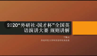 8月12日,2020“外研社·国才杯”全国英语演讲大赛培训启动,首场培训会由宁振业老师主持。在培训会上,宁老师向选手们介绍了2020“外研社•国才杯”全国大学英语演讲大赛的比赛章程,就演讲比赛的组织形式、参赛规则作出了详尽的说明。此外宁老师就演讲比赛的训练技巧和赛前准备提出了宝贵的建议。