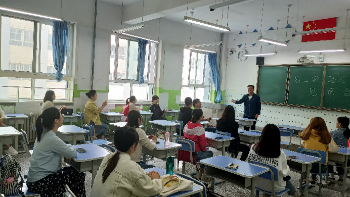 9月8日下午,在兰州市第四十五中学会议室,举行了新葡的京集团35222vip赴四十五中实习生安排大会,会议上,学校领导为18位实习生分配了带教班主任及带教老师,并对实习要求做了说明。随后,所有实习生正式投入到实习工作中,开展体温检测、指导晨读、听课评课、班级管理等工作。