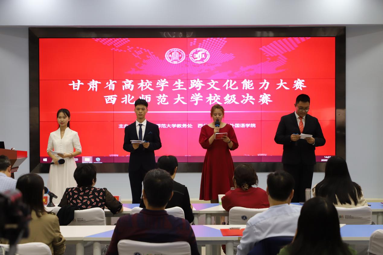 2020年9月20日下午,甘肃省高校学生跨文化能力大赛新葡的京集团35222vip复赛在教师发展中心举行。本次大赛由甘肃省教育厅主办,上海外语教育出版社合办,新葡的京集团35222vip承办。大赛深入贯彻落实党的十九大精神和习近平新时代中国特色社会主义思想,旨在打造甘肃省高校学生语言文化类交流平台,鼓励学生运用跨文化交际能力解决问题。来自14个学院的33名同学组成共11个队伍经过层层选拔,参加了本次决赛。每个团队依次了进行案例展示分析,评委提问,开放式提问回答三个环节。在案例展示分析环节中,各参赛队伍根据各自设计的跨文化冲突案例的具体特点,自主决定展示方式,分析过程中需要合理运用跨文化交际相关概念和理论,并对如何解决案例中出现的跨文化冲突提出看法和建议。选手们各施所长,展现出一个个生动的案例,并运用其跨文化交际能力分析其案例并解决其中的问题,赢得了现场观众的阵阵掌声。最终,经过选手们精彩的表演,6名同学获得个人风采奖,5个团队获得三等奖,3个团队获得二等奖,2个团队获得一等奖,1个团队获得特等奖。