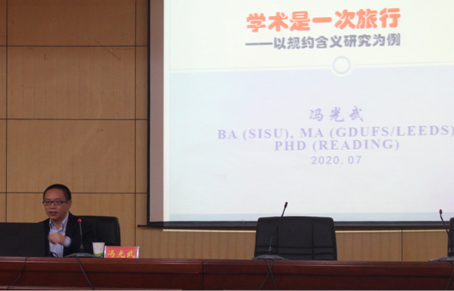 9月19日上午9点至12点,在逸夫图书馆报告厅,冯光武教授以“学术是一场旅行——理论语言学研究漫谈”为题,从“学术旅行”的角度生动阐述了何为理论语言学、语言研究者的工作以及如何进行语言研究。讲座后,冯教授耐心解答了新葡的京官网同学的相关问题,以诙谐的语言和生动的举例赢得了台下热烈的掌声。