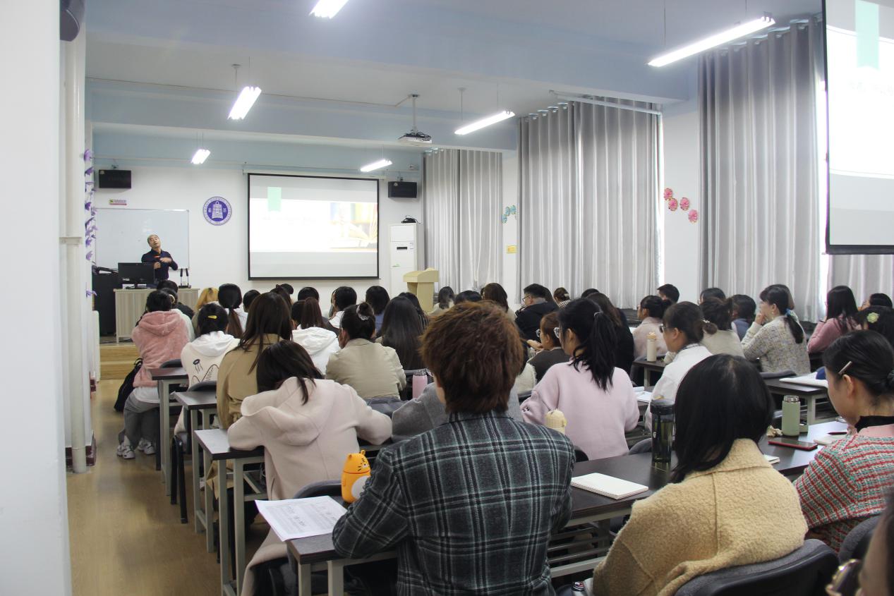 讲座伊始,黄老师借用韩愈《师说》中的“师者,所以传道授业解惑也”和叶圣陶先生的“学生不应该专读书,他的责任是学习人生之道”两句名言,向大家阐释了教师的职责与义务,强调了新时代教师正确“传道”的重要性。其后,黄老师向大家阐述了“四有”教师的内涵并提出了教师应当具备的五项基本素养,即“有情怀、三观正、身心健、爱学习、爱思考”。此外,黄老师结合自己的亲身经历和国内优秀教师的教学案例,告诫在座的各位要不断学习、不断思考,做有才识、有情怀的人民教师。针对“怎样当一名好的英语老师?”这一问题,黄老师结合自己的教学经验向大家展示了上好每一堂课的关键环节所在。最后,黄老师对大家提出了三条试探性建议,即加强学习、苦练基本功和培养共情能力。“亲其师而信其道”,老师一定要多站在学生的角度考虑问题,进而有利于良好师生关系的建立。