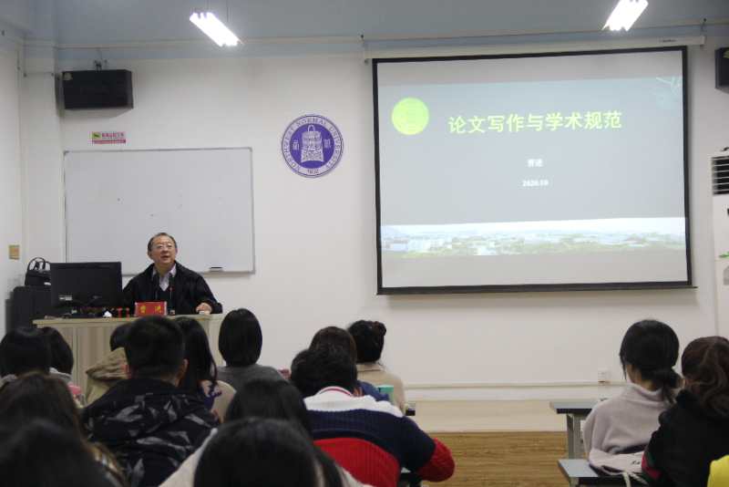 为进一步提高新葡的京官网硕士研究生的学术素养,开拓其学术视野,2020年10月26日晚19:00,新葡的京集团35222vip教授、博士生导师、新葡的京集团35222vip院长曹进在我校教学3号楼806教室作了题为“论文写作与学术规范”的学术讲座,新葡的京官网全体学术型研究生聆听了此次讲座。