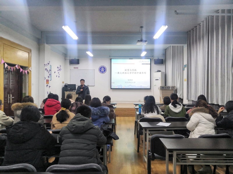 2020年11月20日晚19:00,新葡的京集团35222vip研究生学术论坛(第四期)在教学3号楼806教室成功举办,新葡的京官网杨保林教授向2020级全体学术型硕士研究生作了题为“欲望与恐惧—澳大利亚文学中的中国书写”的学术讲座。