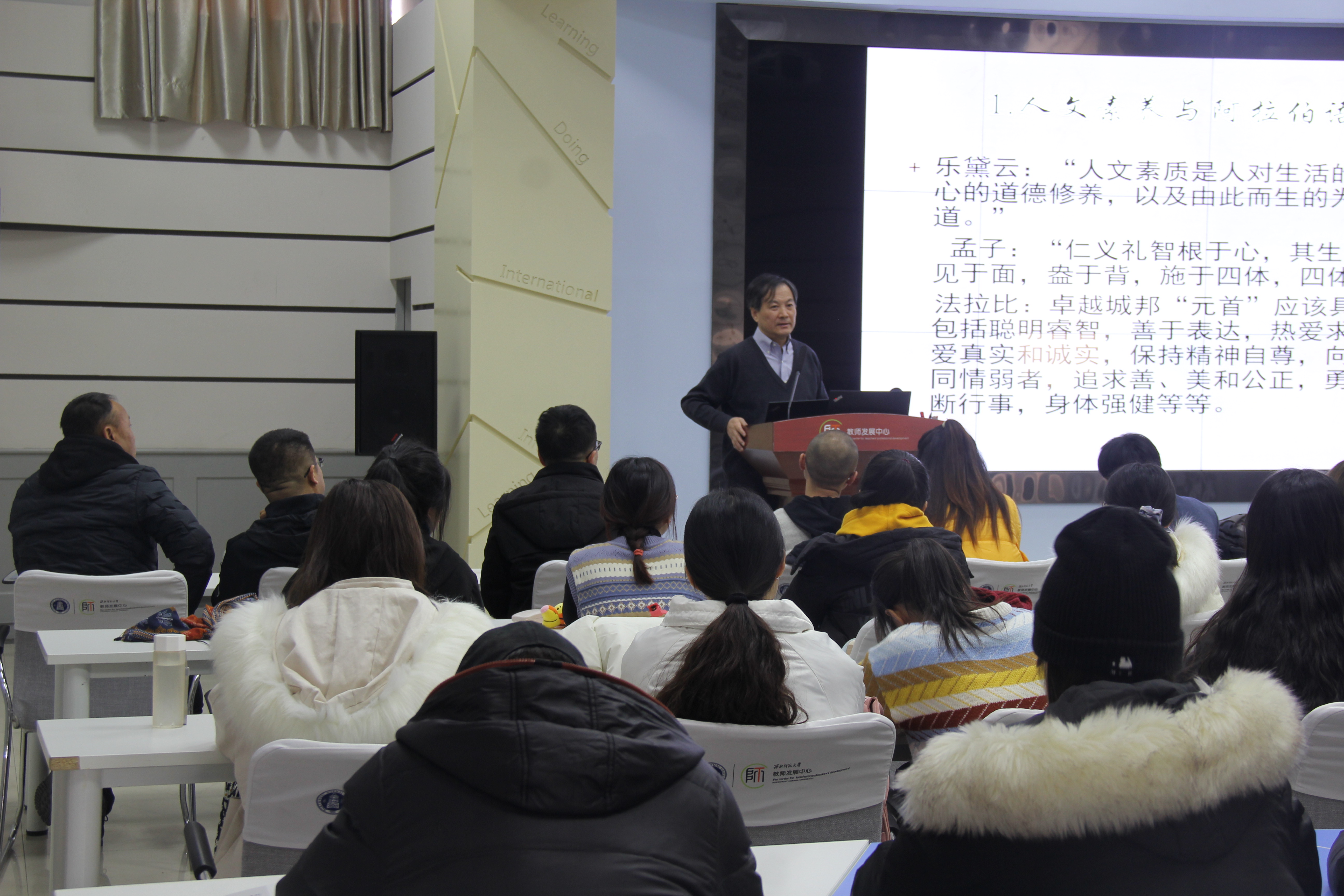 座谈之后于10:00-12:30薛庆国教授在新葡的京集团35222vip教师发展中心二楼学术报告厅进行了题为“新时期的大学阿拉伯语专业:从教学到教育的过渡”的讲座,讲座由阿拉伯语专业丁继光老师主持,阿拉伯语专业全体师生近120余人聆听讲座。在讲座中,薛庆国教授结合阿拉伯语专业在我国的历史渊源和发展现状,智能时代的到来对传统翻译工作的挑战等诸多方面,提出外语教学应从传统意义上的教学向教育过渡;语言文字向精神内涵过渡;语言修为向思想修为过渡;并提出大学外语教育应重视对学生思辨能力的培养,积极鼓励学生进行外语实践能力提升。