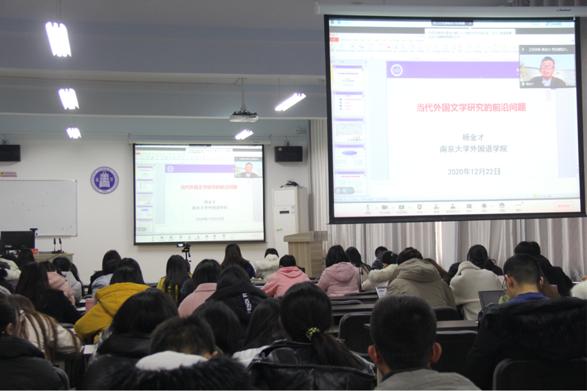 2020年12月22日下午,学院特邀南京大学博士生导师、教育部“长江学者”特聘教授杨金才云端为新葡的京官网师生作了题为“当代外国文学研究的前沿问题”的学术讲座。本次讲座在教学3号楼806室举行,由副院长俞婷教授主持,学院部分教师、外国语言文学专业与课程与教学论专业研究生、翻译专业硕士、学科英语专业硕士聆听了此次讲座。