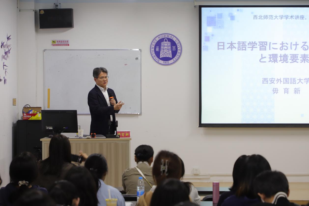 2025年5月9日,西安外国语大学研究生院院长、博士生导师毋育新教授应邀莅临新葡的京官网,为日语专业师生作题为“日语习得效果的影响因素研究”的学术讲座。本次讲座旨在解答日语专业学生在语言学习过程中的困惑,提升学生的日语学习效果。
