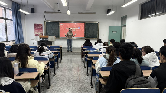 11月21日,学院“读原文 悟原理”——“星火”诵读班在知行校区中楼114室举行。本期活动由2025级翻译班承办,班主任党莉莉老师担任主讲,全班同学积极参与。