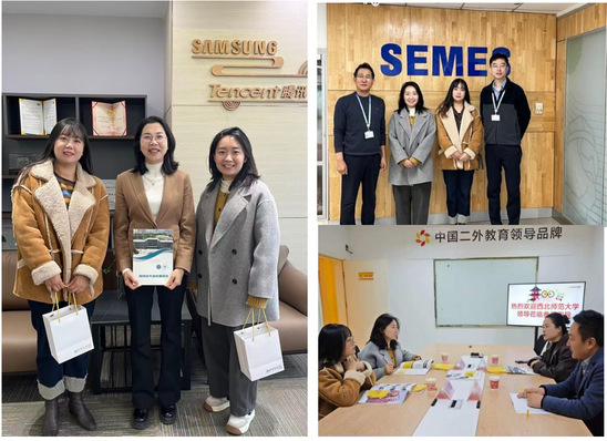 朝鲜语系教师先后访问了三星财产保险(中国)有限公司、三星旗下半导体设备企业Semes(西安)公司、洋光小语种培训中心及西安思想家语言培训学校。朝鲜语系教师深入了解了当前韩语人才的市场需求与就业形势,并与各企业就学生实习实践、课程共建及人才联合培养等议题进行了务实洽谈,在实习基地建设与产学研协同育人方面初步达成合作共识,展示了朝鲜语系毕业生在跨文化沟通与专业服务方面的复合型优势。